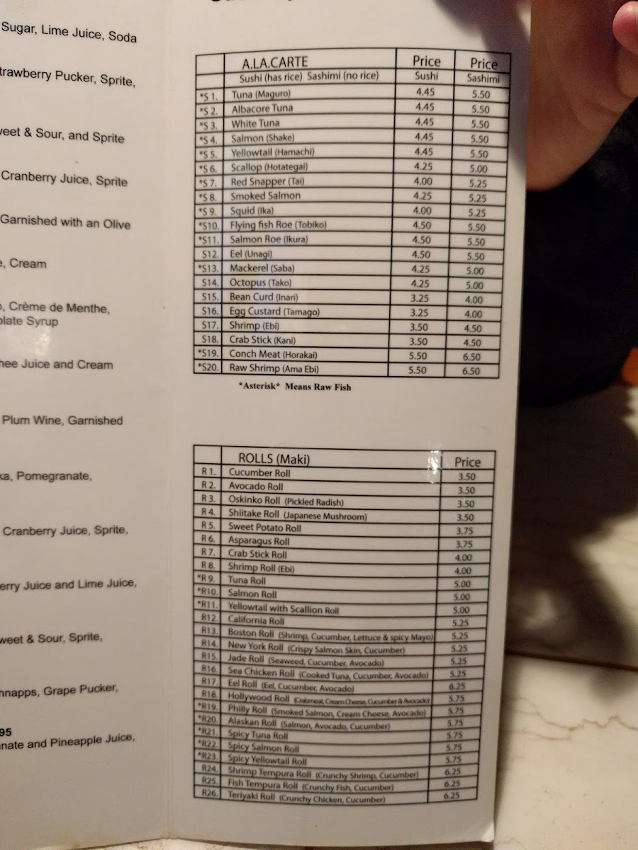 California roll, shrimp tempura roll, super crunchy roll. Made with raw fish.